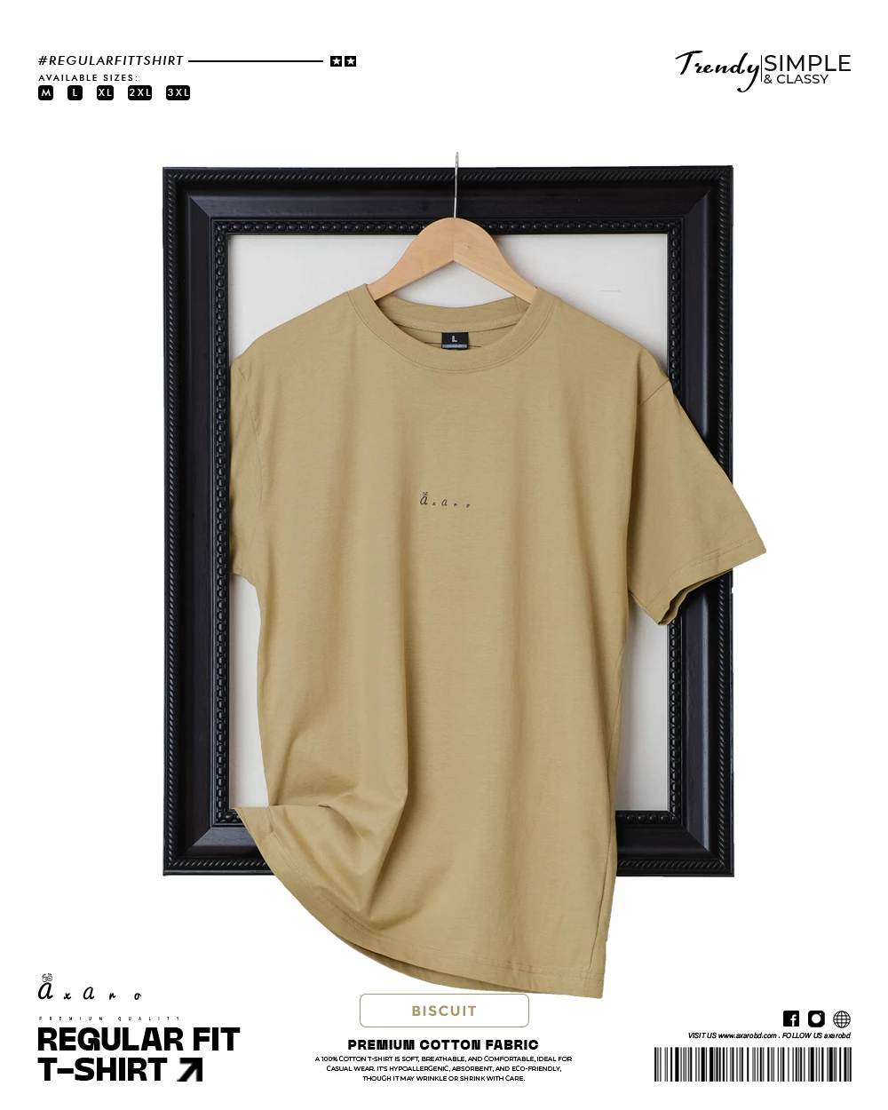 Our ”Regular Fit Plain t-shirt is crafted from high-quality, comfortable cotton fabric.
